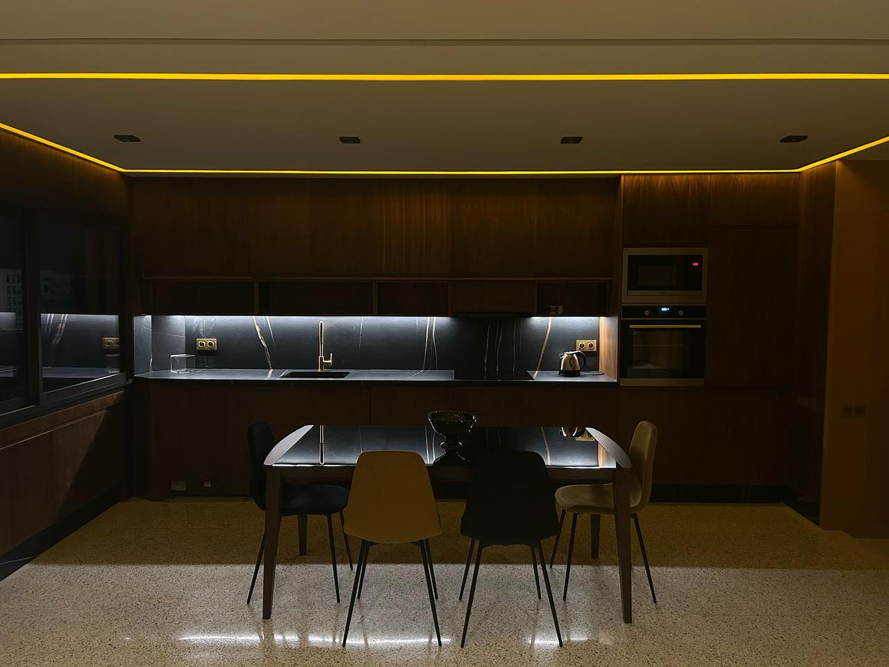 Défi : Métamorphoser un appartement cloisonné, sombre et techniquement dépassé en une habitation contemporaine, ouverte, lumineuse et haut de gamme. Gestion intégrale du projet, de la conception à la livraison meublée.